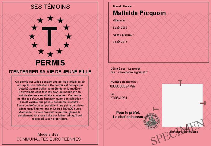 Envoyez par email le Permis d'enterrer sa vie de jeune fille personalisé