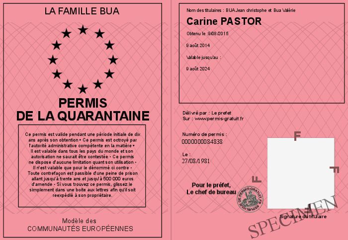 • Permis de la quarantaine