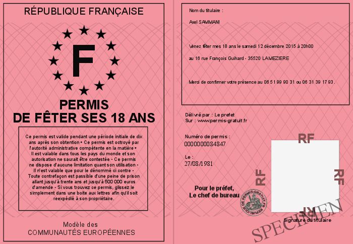 Envoyez par email le Permis de fêter ses 18 ans personalisé