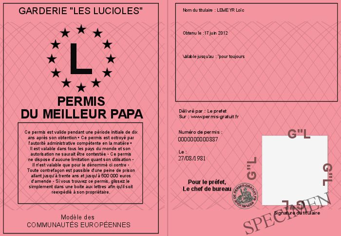 Envoyez par email le Permis du meilleur PAPA personalisé