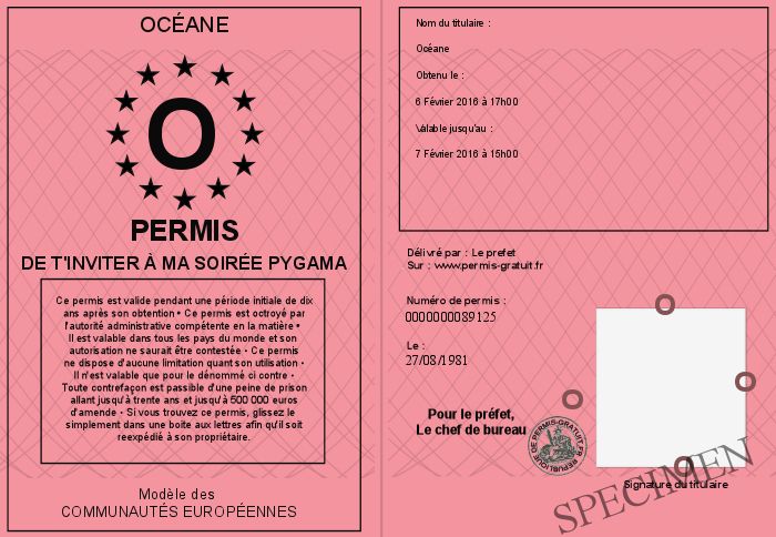 Envoyez par email le Permis de t'inviter à ma soirée pygama personalisé