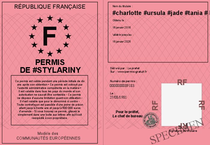 Envoyez par email le Permis de #Stylariny personalisé