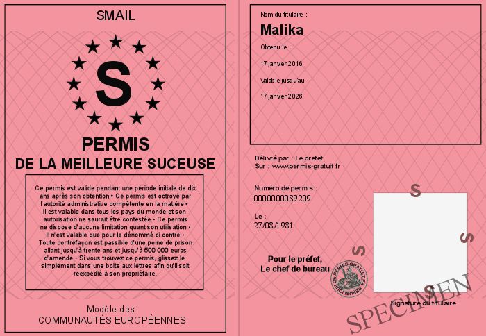 Envoyez par email le Permis de la meilleure suceuse personalisé