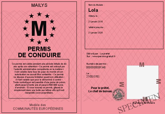 Envoyez par email le Permis de conduire personalisé par la Mailys ! Personnaliser mon permis