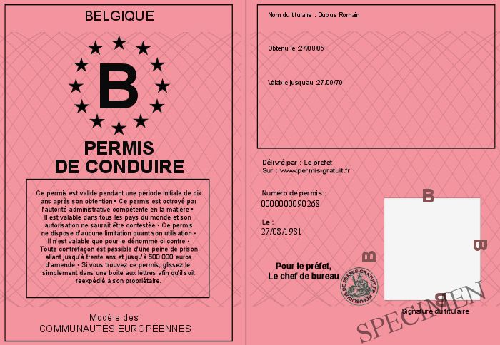 Envoyez par email le Permis de conduire personalisé par la Belgique ! Personnaliser mon permis
