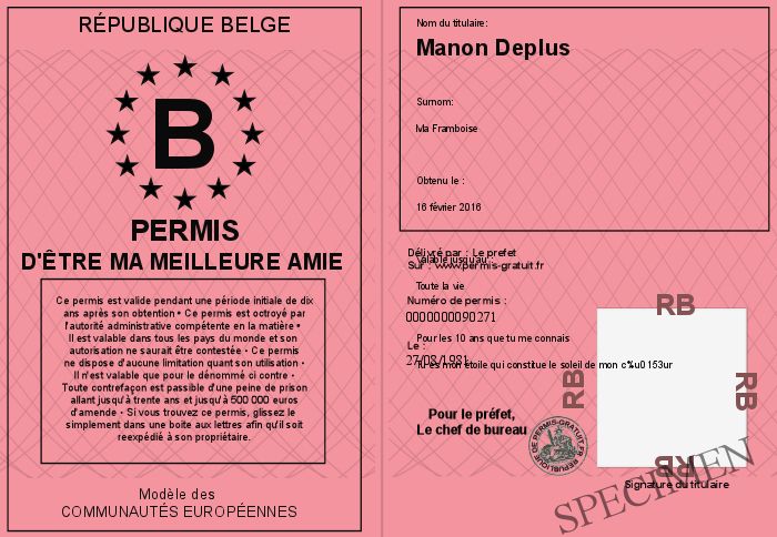 Envoyez par email le Permis d'être ma meilleure amie personalisé