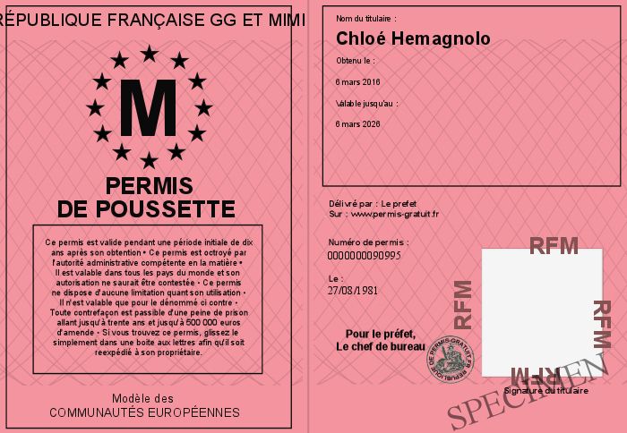 Envoyez par email le Permis de poussette personalisé