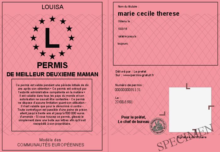 Envoyez par email le Permis de meilleur deuxieme maman personalisé