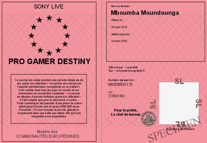 Envoyez par email le Pro Gamer Destiny personalisé par la Sony live ! Personnaliser mon permis