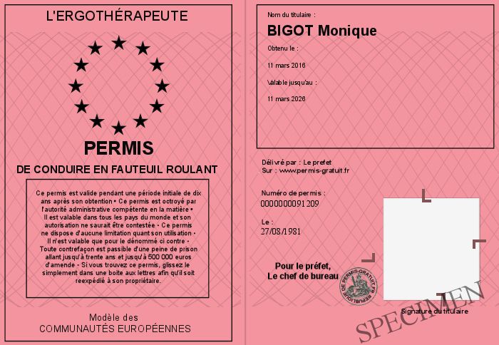Envoyez par email le permis de conduire en fauteuil roulant personalisé