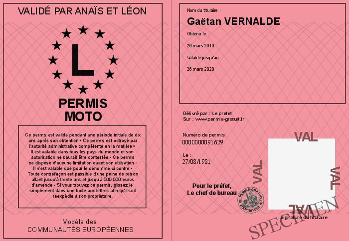 Envoyez par email le Permis Moto personalisé
