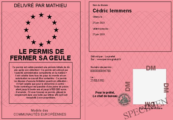 Envoyez par email le Le Permis De fermer sa geule personalisé