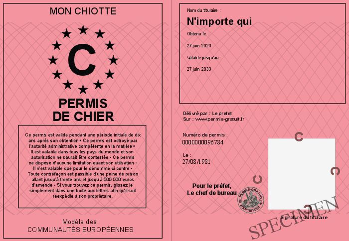 Envoyez par email le Permis de chier personalisé par la Mon chiotte ! Personnaliser mon permis