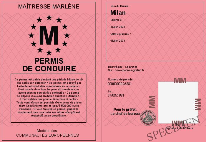 Envoyez par email le Permis de conduire personalisé