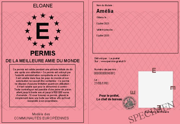 Envoyez par email le Permis de la meilleure amie du monde personalisé