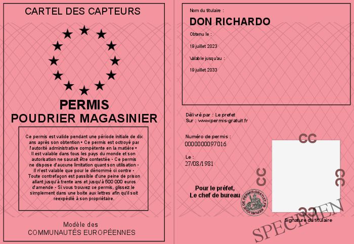 Envoyez par email le Permis POUDRIER MAGASINIER personalisé