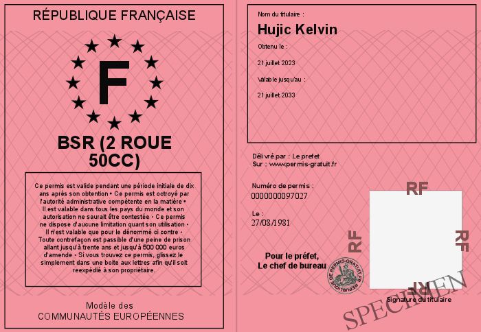 Envoyez par email le BSR (2 roue 50cc) personalisé