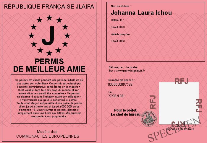 Envoyez par email le permis de meilleur amie personalisé